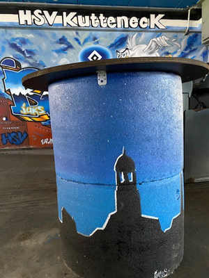 Parallel zur Neugründung des Dachverbands HSV Kutten 1887 im Jahr 2019 entstand hinter dem Block 22A im Umlauf der Nordtribüne dieser besondere Ort für Kuttenträger. Die zuvor grauen Wände, Decken und Stehtische wurden durch den Graffiti Künstler Christian, selbst Teil der Kuttenszene, in vielen Arbeitsstunden farblich gestaltet und erhielten so ein eigenes Gesicht.