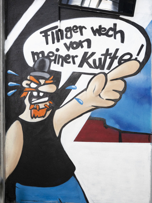 Heute passt das HSV Kutteneck mit seinen bemalten Flächen und den mit Graffitis versehenen Wänden perfekt zu den individuell gestalteten Kutten der Träger. Es ist ein Ort des Austauschs, des Wiedersehens und des gemeinsamen Einstimmens auf den Support für den Hamburger SV und damit ein fester Bestandteil jedes Heimspieltages.